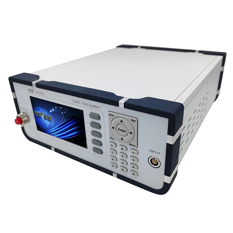 The U8522 is equipped with 1310nm/1510nm: two built-in laser sources The integration of a FC/APC ultra-low back reflection connector on the output port enables the use of hybrid jumpers to accommodate measurements with various connector types without compromising the return loss measurement range. When a device under test (DUT) is connected to the jumper and the DUT output is terminated, the return loss of the DUT will be displayed. The U8522 is very stable at low return loss level and insertion loss and power range cab be tested between +5~ -85 dBm.